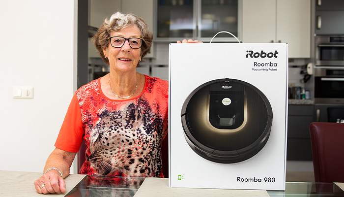 Na lang wikken en wegen besloot Rina van de Vijver om zichzelf een iRobot robotstofzuiger te gunnen. ‘Wát een luxe opeens! Hij neemt me zoveel werk uit handen.’ De Middelburgse koos naar eigen zeggen zeer weloverwogen voor de iRobot Roomba 980, waarvan ze wist dat hij op de A-Merken Veilingen werd aangeboden. ‘Dankzij mijn Privileges lidmaatschap kon ik dit dure model voor een zeer goede prijs aanschaffen.’ Toen Rina eenmaal de knoop had doorgehakt, was het in één keer raak. ‘Ik had ruwweg een aankoopbedrag in mijn hoofd, en het is me aardig goed gelukt om daarop uit te komen.’ Ze sloeg zonder te aarzelen toe toen het moment daar was. ‘Ik hoefde niet per se het maximale, bijna 380 euro voordeel is prachtig.’ Rina geeft hoog op over haar gerobotiseerde hulp in de huishouding. ‘De iRobot is heel erg stil, wat ik belangrijk vind. Stofzuigen doet hij als de beste, zowel op de gladde vloeren beneden als op het tapijt boven. Ik had het nooit verwacht, maar ik kan oprecht zeggen dat de iRobot beter stofzuigt dan ik normaal doe.’ De Zeeuwse is al sinds 2003 tevreden lid van Privileges. Ze heeft intussen dankbaar gebruik gemaakt van zowel de A-Merken Veilingen als de Leisure Veilingen en is erg blij met al het voordeel dat ze met haar aankopen behaalde. Ook schafte ze met gebruik van PrijsVoordeel verschillende apparaten aan in de webshop. ‘Een ik heb meerdere Lastenverlichtingen gemijnd, waarbij ik onder de streep een aanzienlijke winst overhield. Je kunt met Privileges echt alle kanten op.’