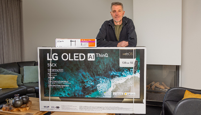 Met de 'oude' televisie van Ivo Janssen was eigenlijk niet zoveel mis. ‘Het geluid was wat minder en het beeldscherm was vrij klein, maar hij deed het nog prima.’ Toch ging Ivo op de A-Merken Veilingen voor een nieuwe tv, en wel een met een scherm van 55 inch. ‘We zijn al een tijd niet op vakantie geweest, dus ik vond dat we wel wat konden investeren in deze vorm van luxe. Zo kwam deze LG 4K-tv in beeld. De 347 euro voordeel is mooi meegenomen. Ik heb meer waarde voor mijn geld.’‘Het moest per se deze LG-tv zijn. Mijn zoon heeft namelijk precies dezelfde en raadde ons aan om ook voor dit type te gaan. Ik zou het verschil tussen OLED of QLED niet kunnen benoemen, maar hij zoekt dat soort dingen altijd tot op de bodem uit. Ik vertrouw dan ook blindelings op zijn advies. Het kwam dus heel goed uit dat deze LG op de A-Merken Veilingen stond.’ Dat precies de televisie van zijn keuze, samen met met een standaard én een muurbeugel, op de A-Merken Veilingen werd aangeboden, was voor Ivo een buitenkans. ‘Dan heb je meteen alles in huis om de televisie op een goede manier te plaatsen.’ Hoewel Ivo sinds 2013 lid van Privileges is en diverse aankopen op zijn naam heeft staan, vond hij het mijnen toch weer spannend. ‘Wanneer moet je drukken? Het blijft toch altijd een gok. Maar goed, het is me weer gelukt, met 347 euro voordeel als resultaat.’ Het grote 55 inch (140 cm) OLED-beeldscherm, met zijn intense kleuren, grote detaillering, rijke zwartnuances en hoge contrastwaarden, maakt veel indruk op de inwoner van het Brabantse Handel. Ook de slimme functies van de televisie gebruikt hij al volop. ‘Het is niet te vergelijken met een exotische vakantiebestemming, maar er gaat toch een nieuwe wereld voor ons open. De smartfuncties zijn geweldig en Netflix zet je met één druk op de knop aan.’