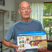 Terug naar Kopers vertellen het Ruud van der Lelij ‘We hebben echt genoten, helemaal dankzij het voordeel’ Ruud van der Lelij en zijn vrouw Elly zijn echte liefhebbers van lekker eten in sterrenrestaurants. Na eerder al genoten te hebben van culinaire uitstapjes naar onder meer Brugge, Amsterdam en Praag met Privileges, kozen ze dit keer voor een arrangement met twee overnachtingen in het schitterende kasteelhotel Grandhotel Schloss Bensberg, inclusief diner in het tweesterrenrestaurant Vendôme. ‘Het was weer een uiterst geslaagd weekend,’ aldus een voldane Ruud, die het arrangement met maar liefst 393 euro voordeel mijnde. Bij aankomst waren Elly en Ruud direct onder de indruk van het hotel. ‘Het interieur was overal goudkleurig, en onze badkamer was helemaal van marmer,’ vertelt hij. Ook de rest van het verblijf beviel Ruud uitstekend. ‘We hebben echt genoten van de luxe. En al helemaal dankzij het voordeel van bijna 400 euro, want anders was het best prijzig geweest. Het is erg prettig dat alles voor je geregeld is, met de Privileges-arrangementen.’ Het absolute hoogtepunt was het meergangendiner in Vendôme. ‘Heerlijk. Vooral de amuses waren voortreffelijk, helemaal top. Ze smaakten vaak heel anders dan je zou verwachten, maar wel fenomenaal lekker. En alles was heel fraai opgemaakt, net kleine kunstwerkjes’, zegt Ruud. Ook het driegangendiner in Trattoria Enoteca, eveneens inbegrepen in het arrangement, viel zeer in de smaak. ‘Ik had als hoofdgerecht rundvlees met groenten. Dat vlees hadden ze echt vele uren laten pruttelen en het was ronduit heerlijk.’ Naast al het heerlijks was er ook meer dan genoeg tijd om de omgeving te verkennen. Het hotel ligt namelijk op slechts 15 kilometer van Keulen, dat bekend staat om de imposante Dom. ‘Wij zijn inderdaad naar de Dom geweest. Die was heel mooi en enorm groot, zowel van buiten als van binnen. We zijn ook nog in de Schatkamer van de Dom geweest en hebben een bustour van anderhalf uur door de hele stad gemaakt.’ De 62-jarige Ruud woont met Elly in Naaldwijk en werkt als buitenlandchauffeur. Als trouwe fans van de Leisure Veilingen zijn Ruud en Elly allebei Privileges lid: Ruud sinds 2019 en Elly sinds 2018. Allebei sloegen zij al vijf keer hun slag op MijnPrivileges.nl met een arrangement van de Evenementen & Leisure Veilingen. ‘Het is zo’n ontzettend leuk concept!’ zegt Ruud enthousiast. ‘Je hebt bij Privileges zoveel keuze qua bestemmingen en arrangementen, het verveelt nooit!’