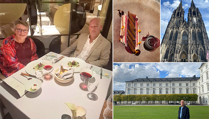 Ruud van der Lelij en zijn vrouw Elly zijn echte liefhebbers van lekker eten in sterrenrestaurants. Na eerder al genoten te hebben van culinaire uitstapjes naar onder meer Brugge, Amsterdam en Praag met Privileges, kozen ze dit keer voor een arrangement met twee overnachtingen in het schitterende kasteelhotel Grandhotel Schloss Bensberg, inclusief diner in het tweesterrenrestaurant Vendôme. ‘Het was weer een uiterst geslaagd weekend,’ aldus een voldane Ruud, die het arrangement met maar liefst 393 euro voordeel mijnde. Bij aankomst waren Elly en Ruud direct onder de indruk van het hotel. ‘Het interieur was overal goudkleurig, en onze badkamer was helemaal van marmer,’ vertelt hij. Ook de rest van het verblijf beviel Ruud uitstekend. ‘We hebben echt genoten van de luxe. En al helemaal dankzij het voordeel van bijna 400 euro, want anders was het best prijzig geweest. Het is erg prettig dat alles voor je geregeld is, met de Privileges-arrangementen.’ Het absolute hoogtepunt was het meergangendiner in Vendôme. ‘Heerlijk. Vooral de amuses waren voortreffelijk, helemaal top. Ze smaakten vaak heel anders dan je zou verwachten, maar wel fenomenaal lekker. En alles was heel fraai opgemaakt, net kleine kunstwerkjes’, zegt Ruud. Ook het driegangendiner in Trattoria Enoteca, eveneens inbegrepen in het arrangement, viel zeer in de smaak. ‘Ik had als hoofdgerecht rundvlees met groenten. Dat vlees hadden ze echt vele uren laten pruttelen en het was ronduit heerlijk.’ Naast al het heerlijks was er ook meer dan genoeg tijd om de omgeving te verkennen. Het hotel ligt namelijk op slechts 15 kilometer van Keulen, dat bekend staat om de imposante Dom. ‘Wij zijn inderdaad naar de Dom geweest. Die was heel mooi en enorm groot, zowel van buiten als van binnen. We zijn ook nog in de Schatkamer van de Dom geweest en hebben een bustour van anderhalf uur door de hele stad gemaakt.’ De 62-jarige Ruud woont met Elly in Naaldwijk en werkt als buitenlandchauffeur. Als trouwe fans van de Leisure Veilingen zijn Ruud en Elly allebei Privileges lid: Ruud sinds 2019 en Elly sinds 2018. Allebei sloegen zij al vijf keer hun slag op MijnPrivileges.nl met een arrangement van de Evenementen & Leisure Veilingen. ‘Het is zo’n ontzettend leuk concept!’ zegt Ruud enthousiast. ‘Je hebt bij Privileges zoveel keuze qua bestemmingen en arrangementen, het verveelt nooit!’